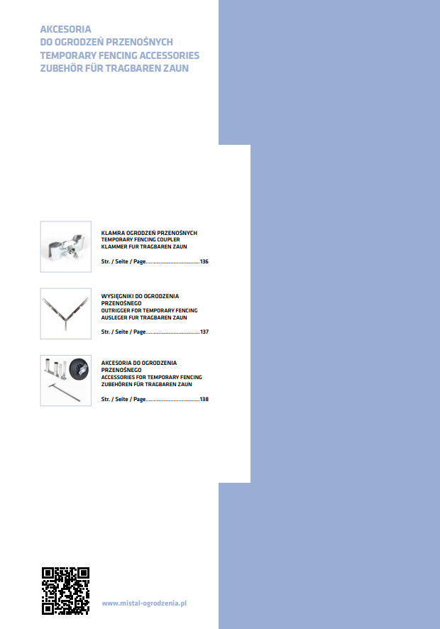 Akcesoria z tej kategorii stworzyliśmy, aby umożliwić łatwy i szybki montaż oraz demontaż ogrodzeń przenośnych stosowanych w celu zabezpieczenia: placów budowy, terenów przemysłowych czy imprez masowych. W ofercie znajdują się m.in: