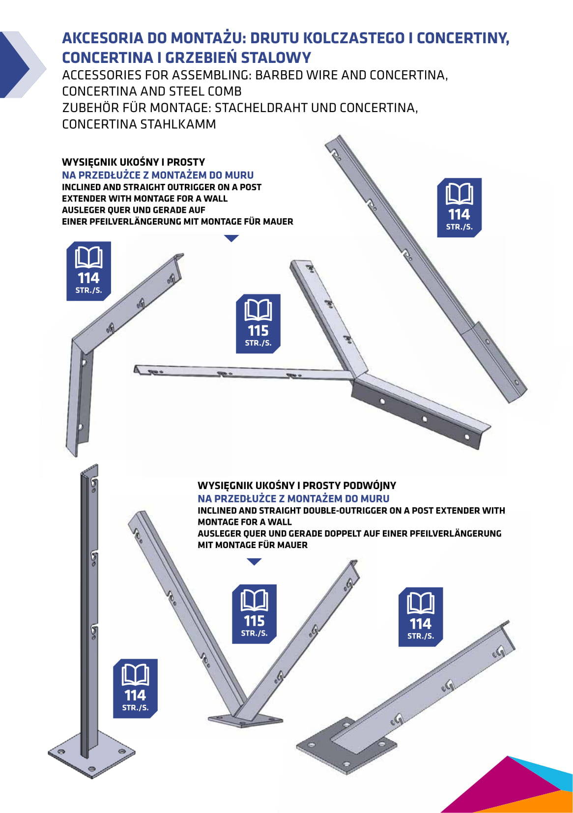 - wysięgnik ukośny i prosty podwójny na przedłużce z montażem do muru